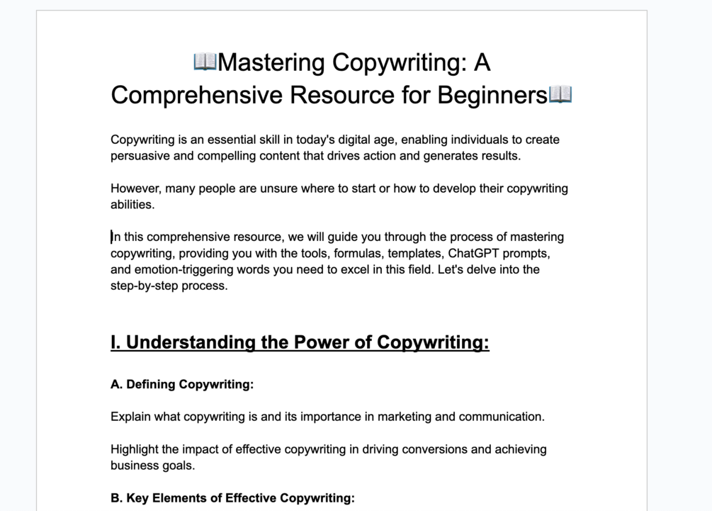 In this comprehensive resource, we will guide you through the process of mastering copywriting, providing you with the tools, formulas, templates, ChatGPT prompts, and emotion-triggering words you need to excel in this field. Let's delve into the step-by-step process